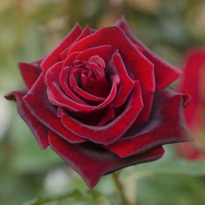 Диаметр раскрытых бутонов составляет 7-8 сантиметров. Густомахровые цветки имеют изящную бокаловидную форму, а их длинные бархатистые лепестки окрашены в темно-красный, почти черный цвет. Они могут расти как поодиночке, так и в соцветиях. Длинные побеги, на которых сидят бутончики, делают сорт идеальным для срезки, однако стоит учесть, что аромат Баркароле не особенно яркий, но очень нежный.
